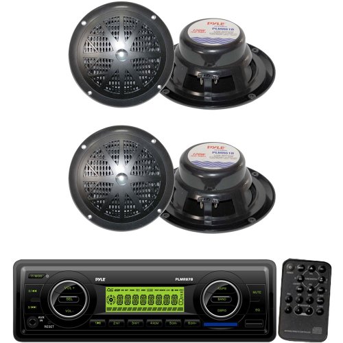 On Sale Pyle Marine Radio Receiver and Speaker Package - PLMR87WB AM/FM-MPX IN-Dash Marine MP3 Player/Weatherband/USB & SD / MMC Card Function (Black) - 2x PLMR61B 2 Pairs of 120 Watt 6.5'' Dual Cone Black Marine Waterproof Speakers